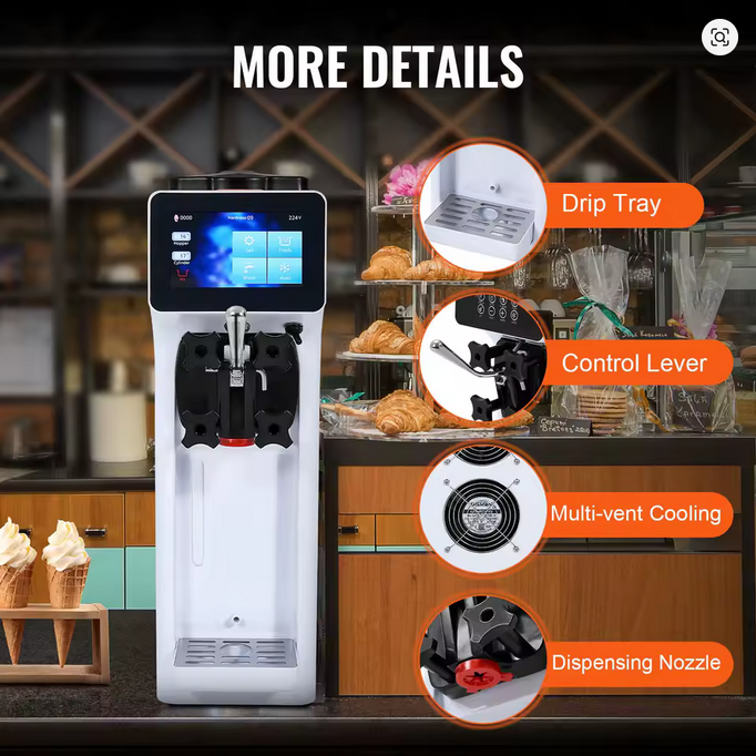 Versatile Application: Designed for versatility, this ice cream machine soft serve is ideal for creating a wide array of ice cream-based treats, including cones, waffles, and cakes. It’s a perfect addition to ice cream shops, cafes, drink bars, and small food stalls, enhancing any commercial setting.